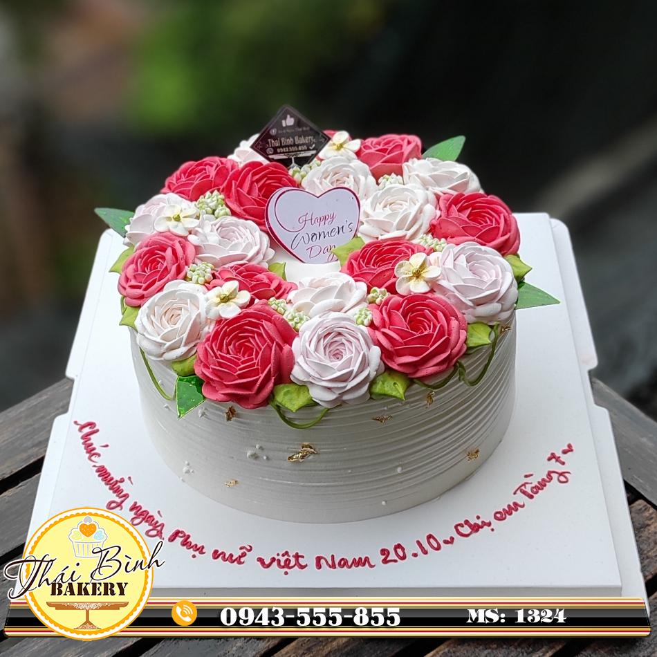 Đánh Giá: Bánh kem hoa hồng đỏ-hồng phấn mừng ngày PNVN 20-10