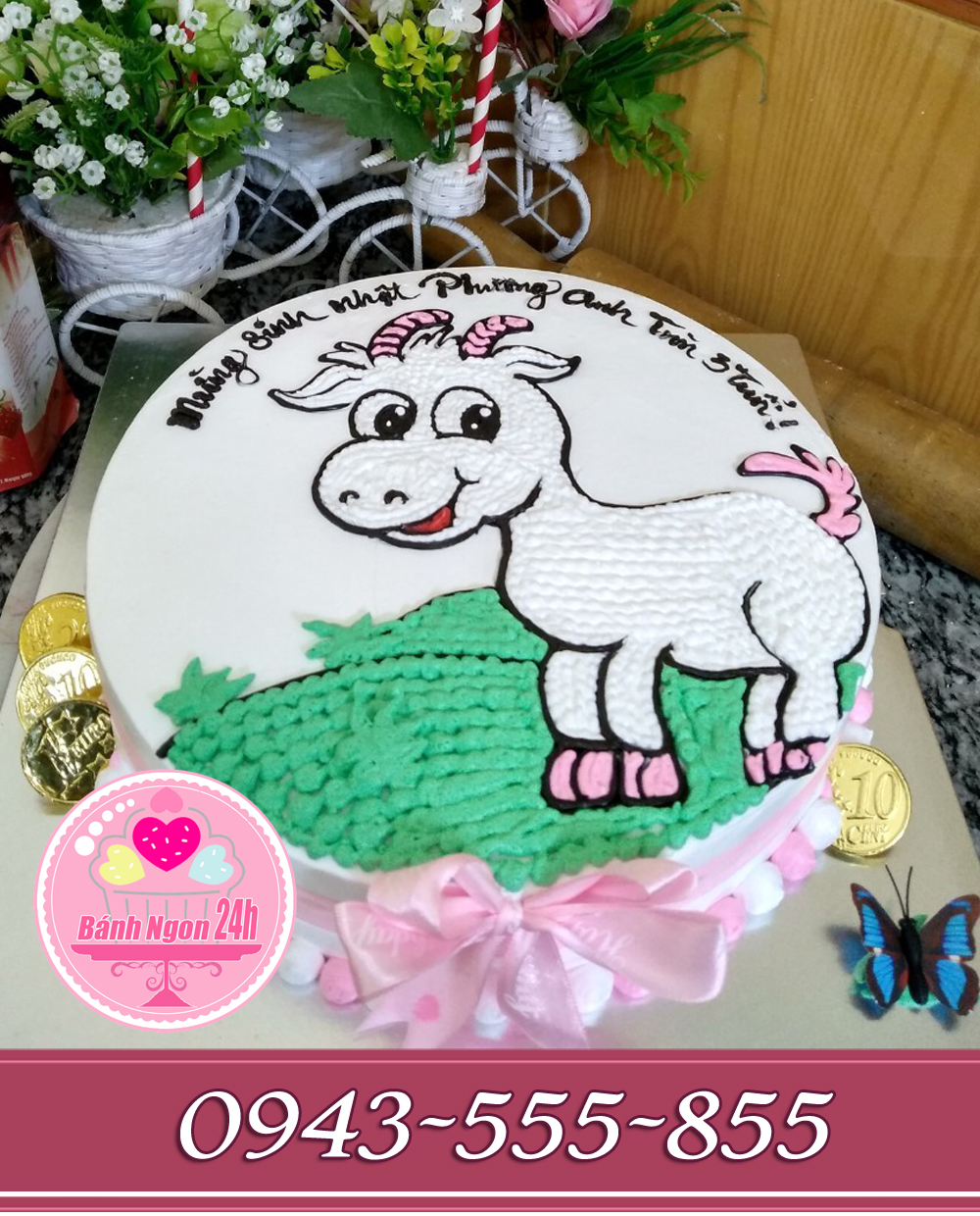Đánh Giá: bánh kem vẽ bé tuổi dê non đang vui chơi trên đồng cỏ xanh
