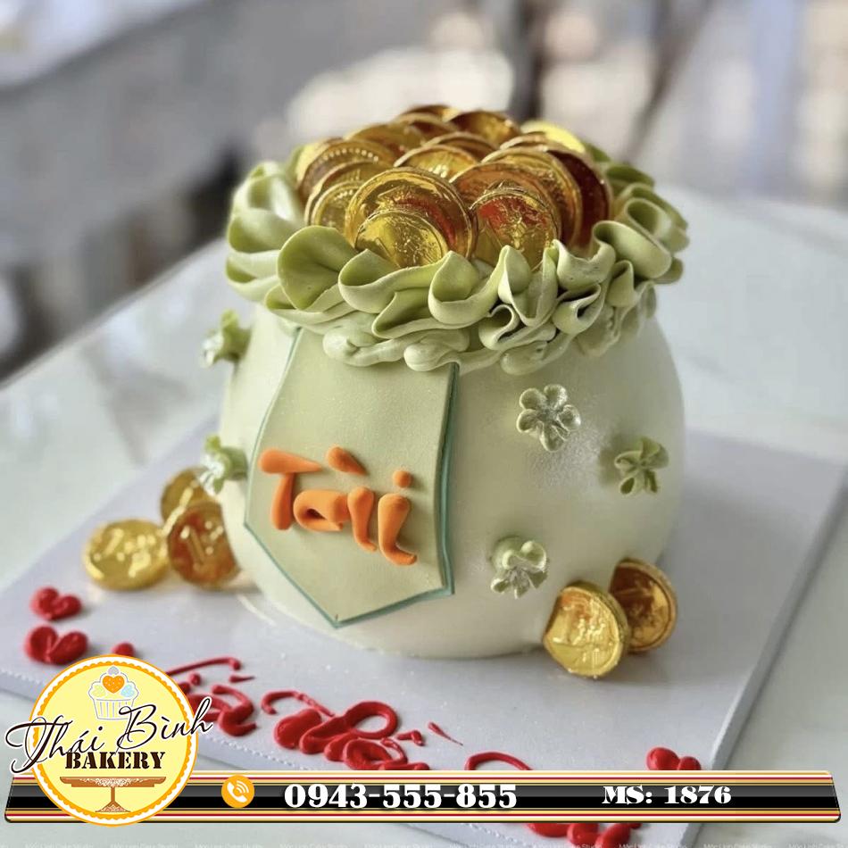 Bánh kem "Bánh kem dựng hình túi tiền vía thần tài Handmade của thái bình bakery quà tặng có giá trị độc đáo, gây ấn tượng cho ngày Sinh Nhật, Làm cho Bữa tiệc của Bạn thêm vui vẻ và ấm áp