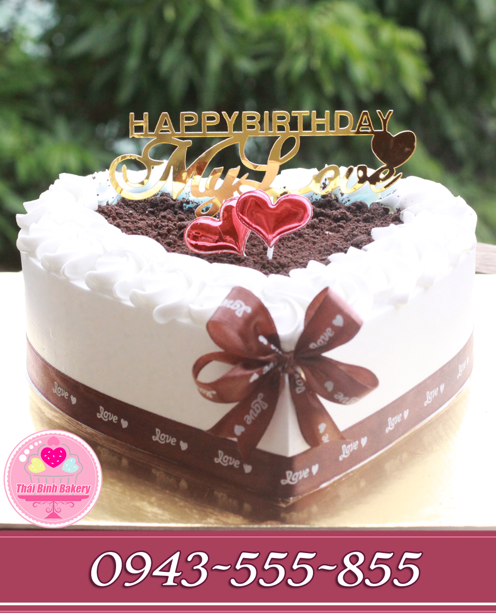 Bánh kem "Bánh kem trái tim cắm phụ kiện chữ happy birthday my love Handmade của thái bình bakery quà tặng có giá trị độc đáo, gây ấn tượng cho ngày Sinh Nhật, Làm cho Bữa tiệc của Bạn thêm vui vẻ và ấm áp