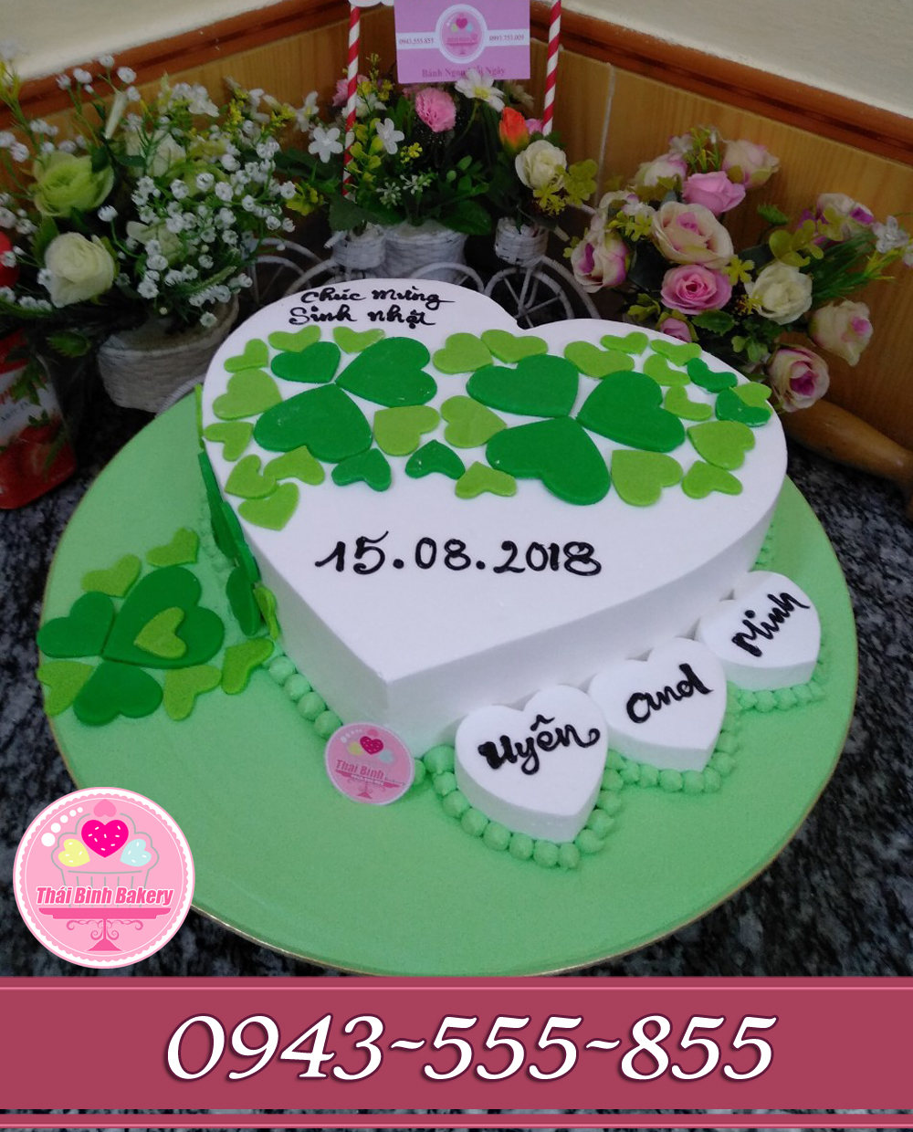Đánh Giá: Bánh trai tim xanh với cỏ 4 lá tặng sinh nhật người yêu