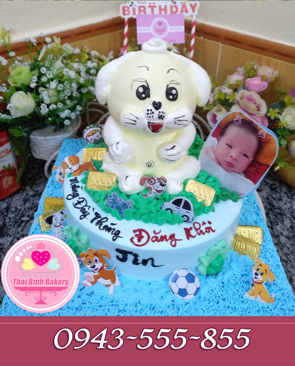 Bánh kem "Bánh kem dựng 3d chú chó đáng yêu tặng bé đăng khôi - jin đầy tháng Handmade của thái bình bakery quà tặng có giá trị độc đáo, gây ấn tượng cho ngày Sinh Nhật, Làm cho Bữa tiệc của Bạn thêm vui vẻ và ấm áp