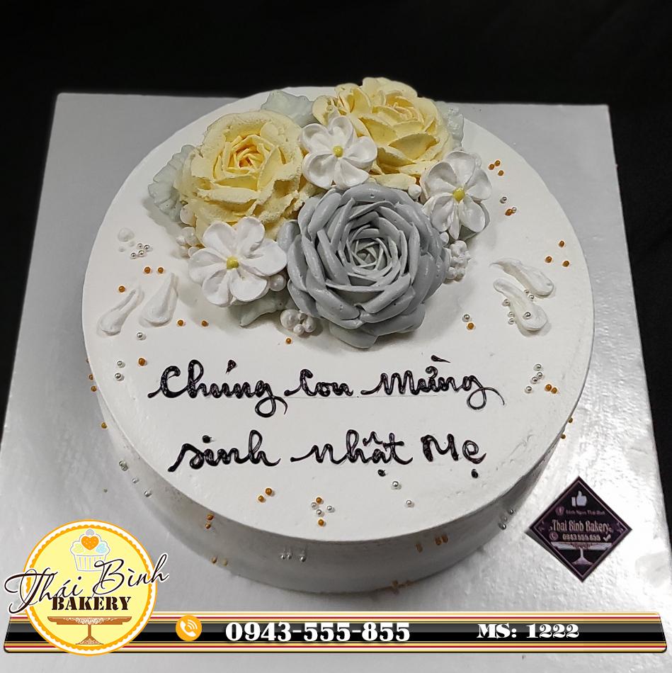 Đánh Giá: Bánh kem hoa hồng tím $ hoa hồng vàng mừng sinh nhật Mẹ