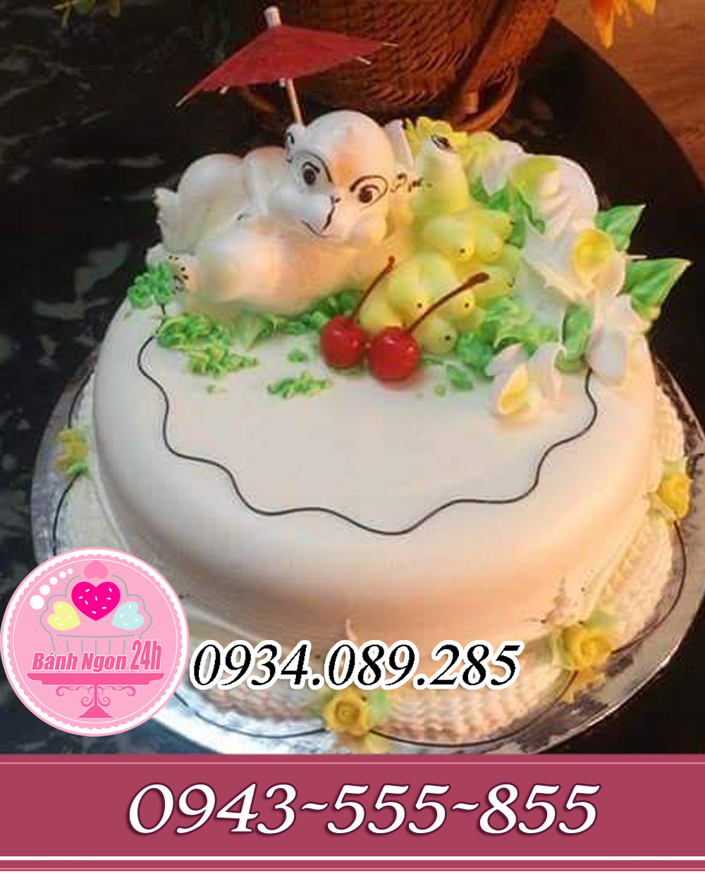 Đánh Giá: Bánh kem nghệ thuật 3D nặn thú nổi con khỉ quả chuối đang cầm ô