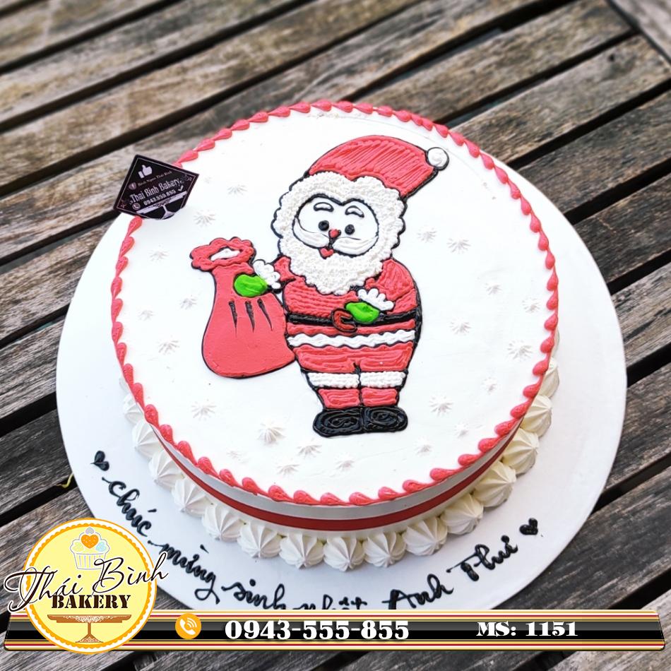 Bánh kem "Bánh kem ông già noel cầm giỏ quà ngày giáng sinh Handmade của thái bình bakery quà tặng có giá trị độc đáo, gây ấn tượng cho ngày Sinh Nhật, Làm cho Bữa tiệc của Bạn thêm vui vẻ và ấm áp