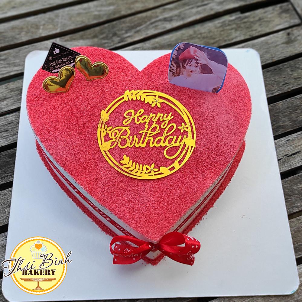 Đánh Giá: Bánh tim đỏ in ảnh cắm tim vàng tặng bạn bè