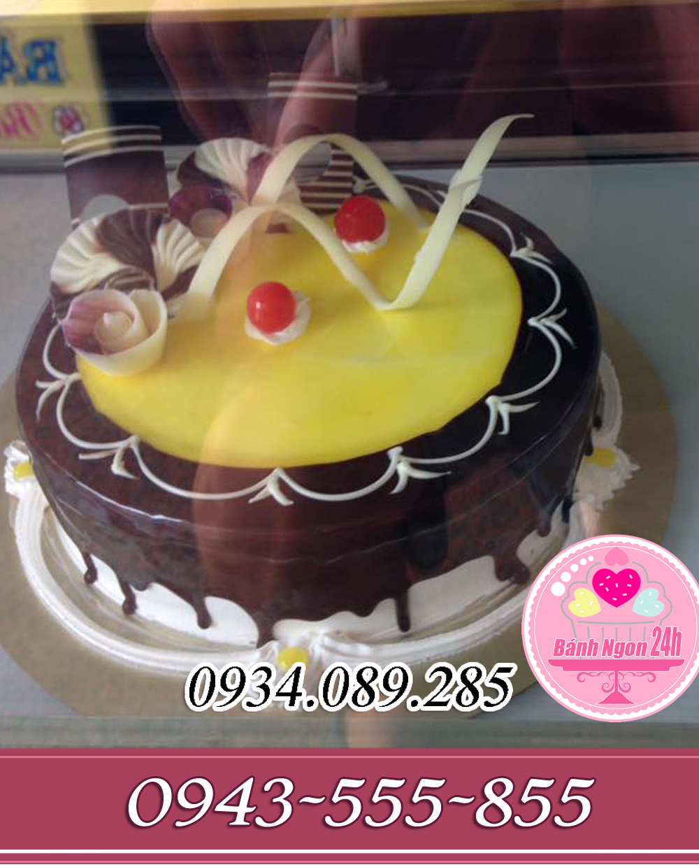 Đánh Giá: Bánh âu phủ socola mứt dứa trang trí hoa socola