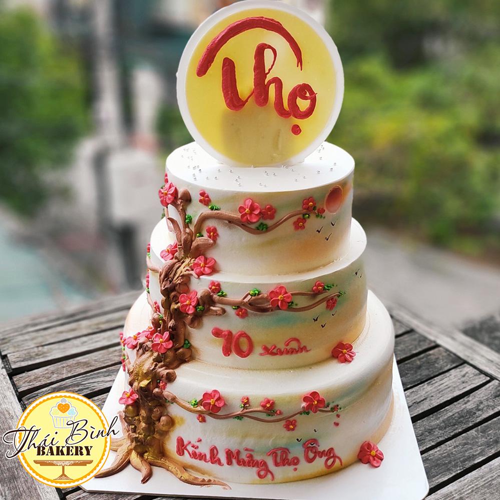 Bánh kem "bánh kem 3 tầng mừng thọ ông tuổi 70 Handmade của thái bình bakery quà tặng có giá trị độc đáo, gây ấn tượng cho ngày Sinh Nhật, Làm cho Bữa tiệc của Bạn thêm vui vẻ và ấm áp