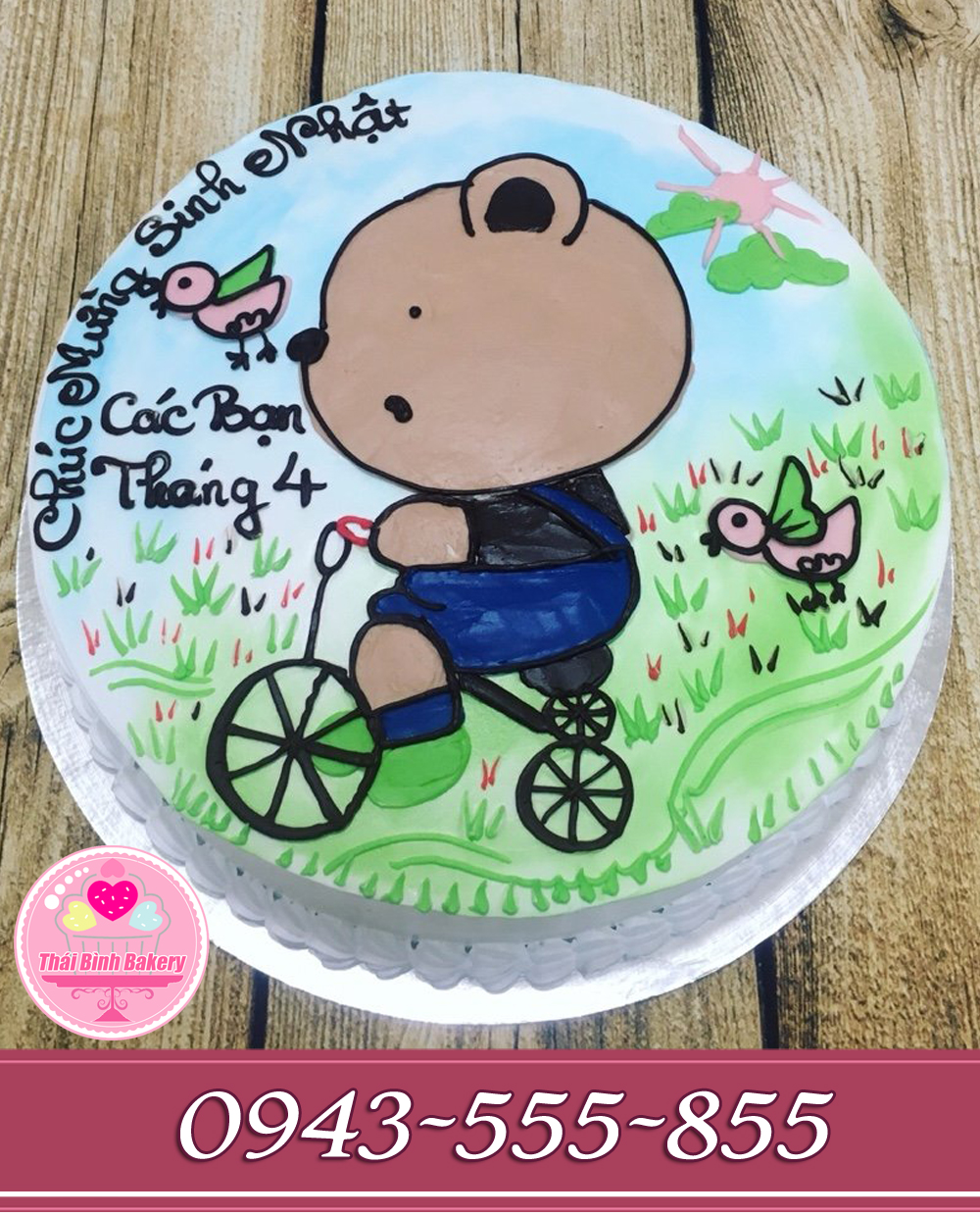 Đánh Giá: Bánh kem tặng bé gấu đi xe đạp trên đồng cỏ xanh