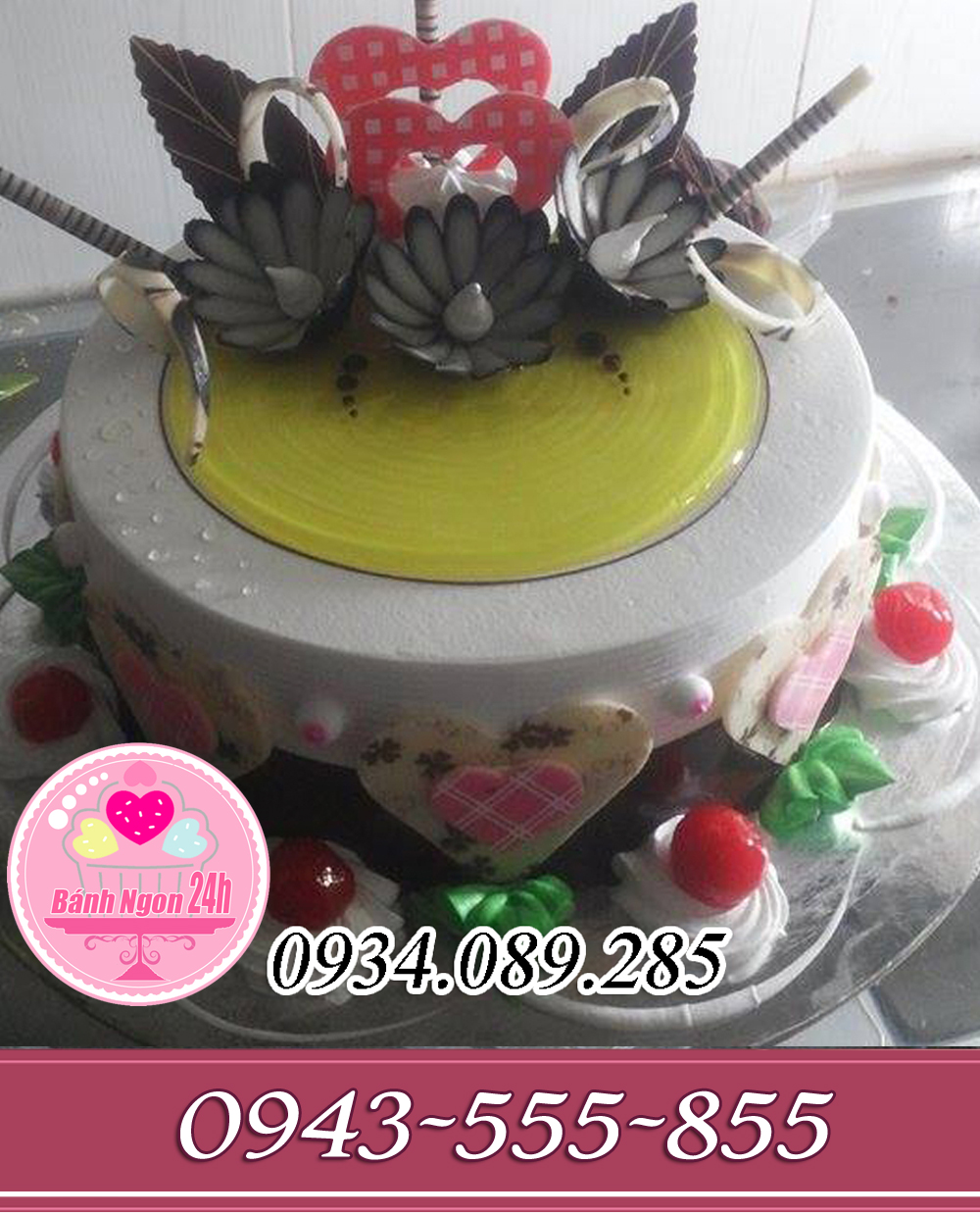 Đánh Giá: Bánh tròn trang trí mứt dứa hoa lá socola đẹp nhất