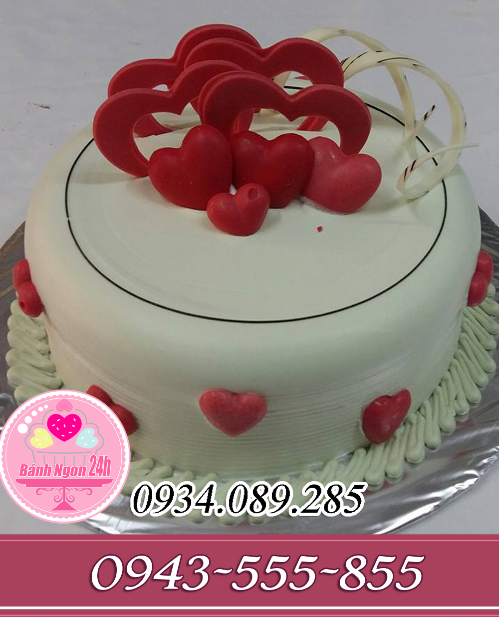 Đánh Giá: Bánh tròn trang trí kẹo đường trái tim đỏ đẹp