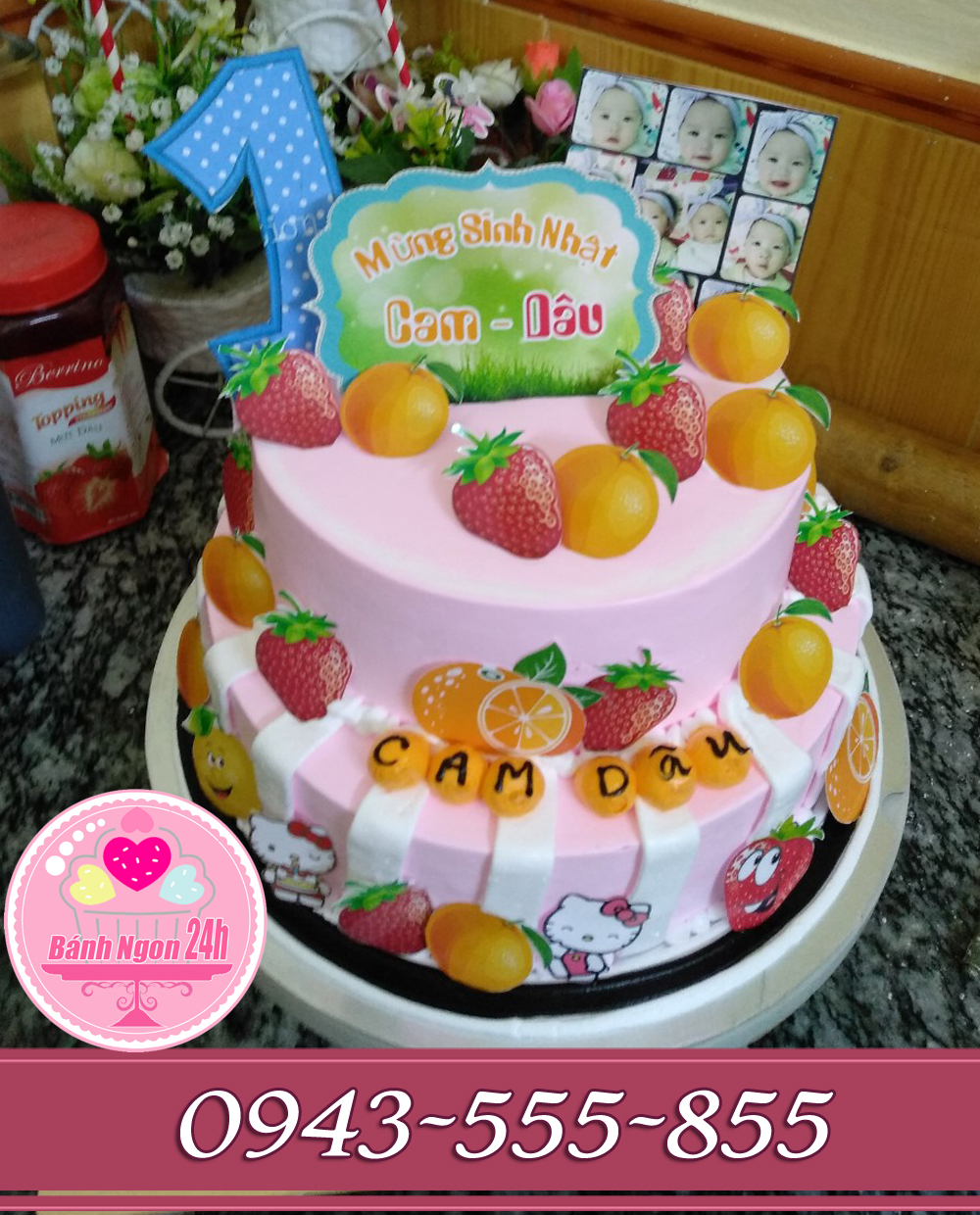 Đánh Giá: bánh kem 2 tầng in ảnh sinh nhật bé dâu cam tuổi