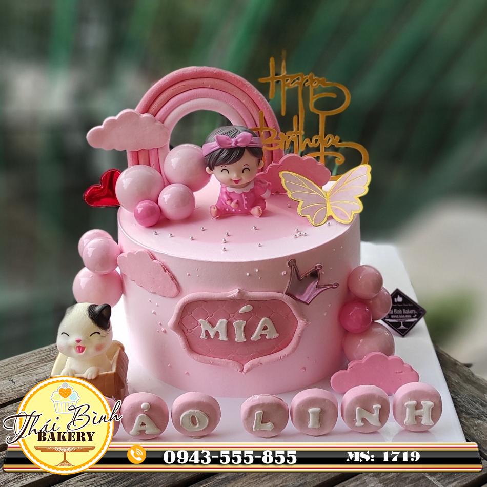 Đánh Giá: Bánh kem công chúa đeo nơ hồng đầy tháng bé Bảo Linh
