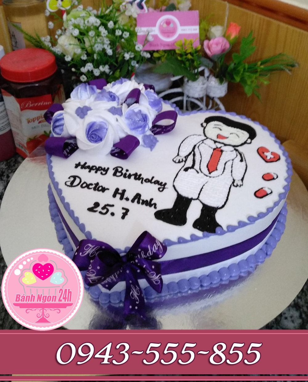 Bánh kem "Bánh trái tim tặng bạn trai đang học bác sỹ tại ĐH Y thái bình Handmade của thái bình bakery quà tặng có giá trị độc đáo, gây ấn tượng cho ngày Sinh Nhật, Làm cho Bữa tiệc của Bạn thêm vui vẻ và ấm áp