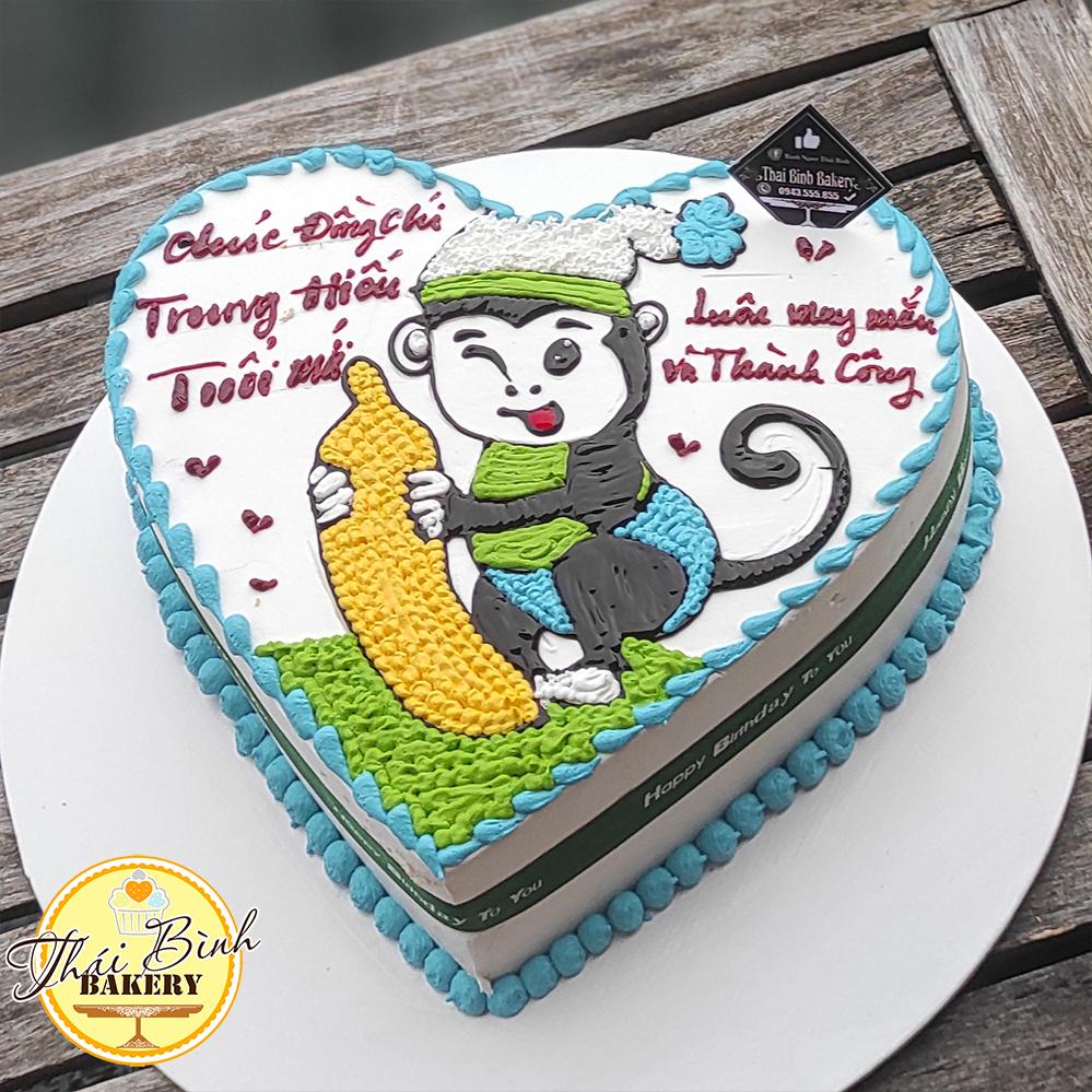 Đánh Giá: Bánh tim vẽ con khỉ ôm quả chuối đơn giản đẹp tặng bạn bè, đồng nghiệp