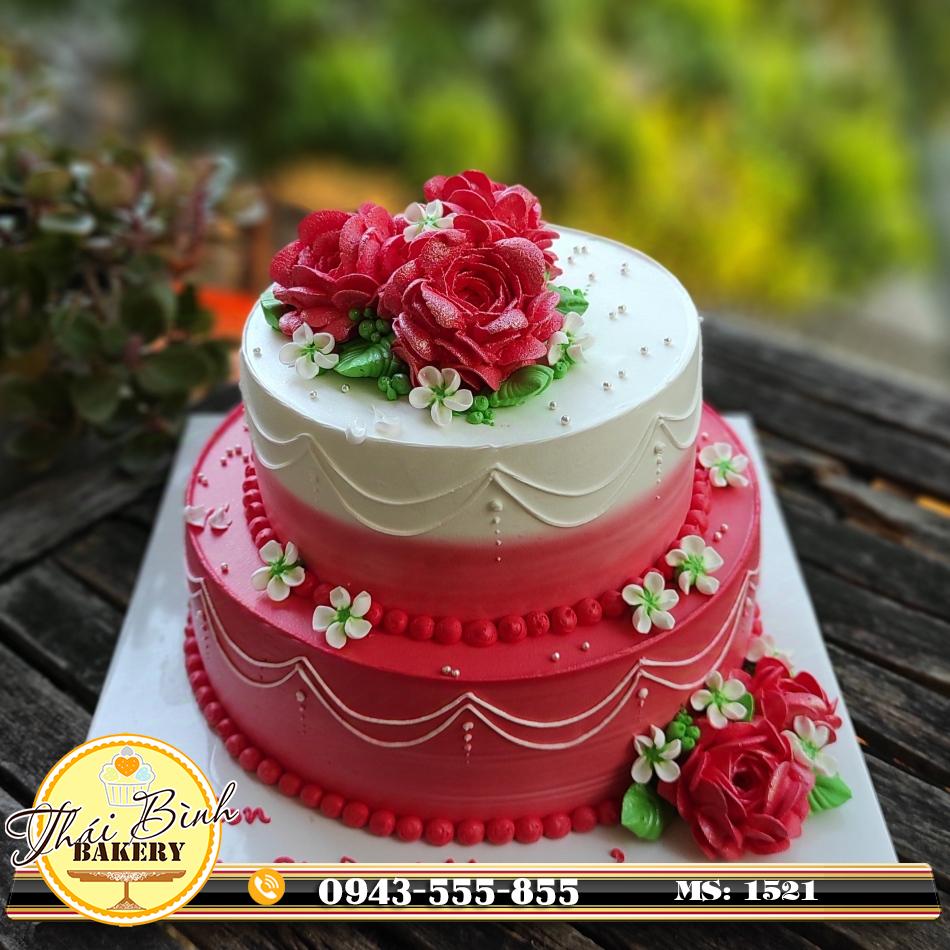Bánh kem hoa hồng đỏ 2 tầng ngày 20_10 [MS: 1493]