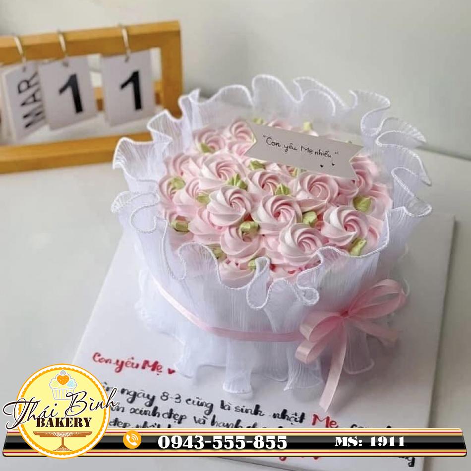 Bánh kem "Bánh kem bó hoa tặng mẹ ngày quốc tế phụ nữ 08_03 Handmade của thái bình bakery quà tặng có giá trị độc đáo, gây ấn tượng cho ngày Sinh Nhật, Làm cho Bữa tiệc của Bạn thêm vui vẻ và ấm áp