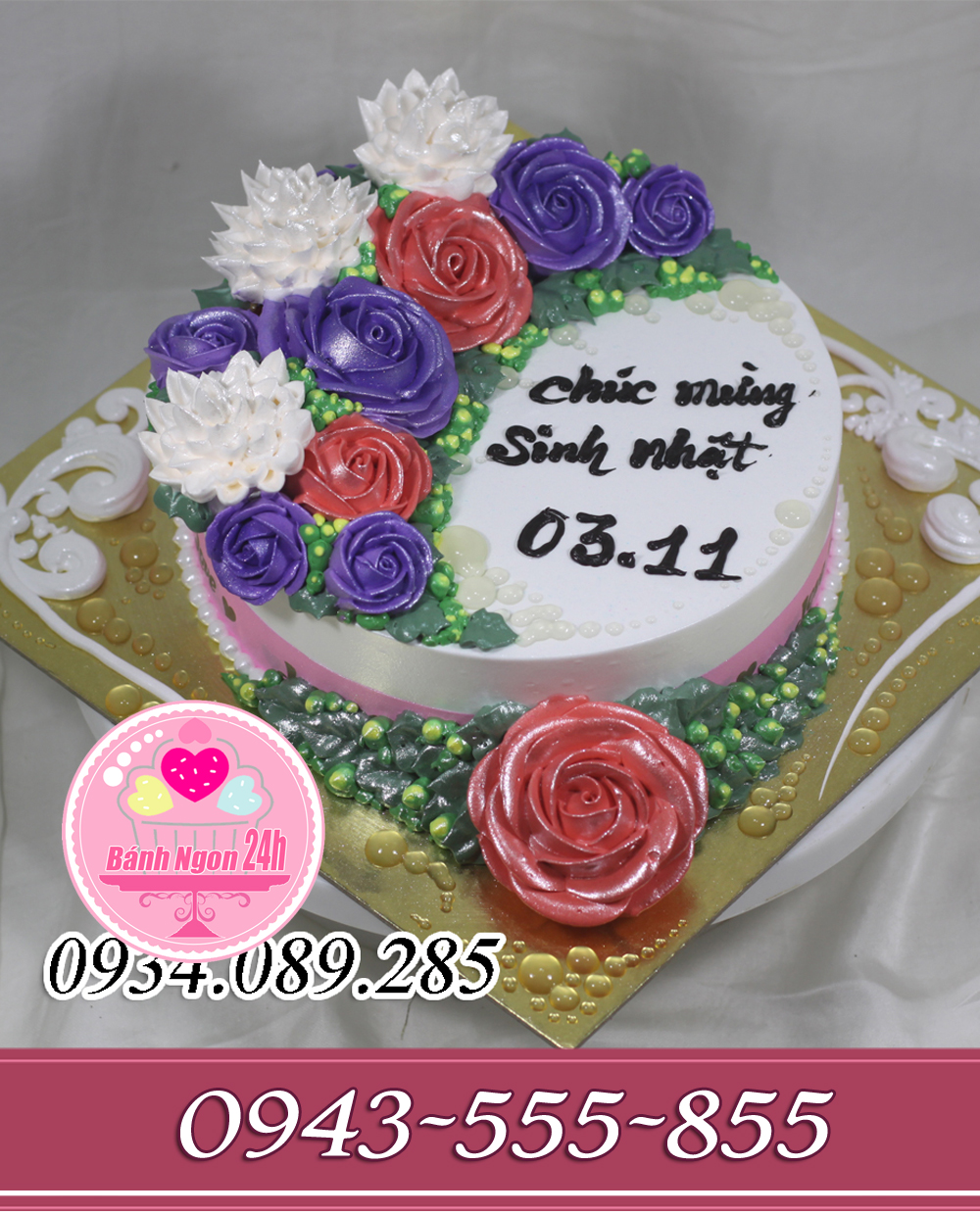 Đặt Bánh theo yêu cầuBánh hình trònBánh kem hoa hàn quốc tím, đỏ tặng bạn gái