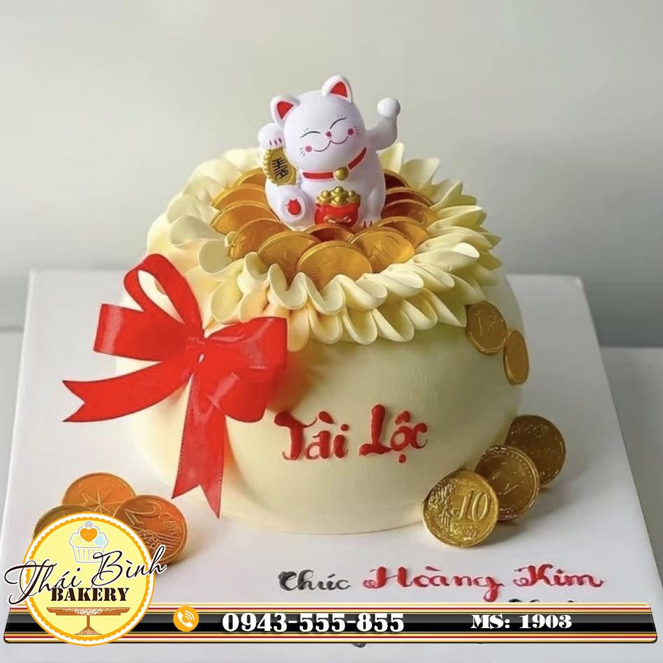 Bánh kem hũ vàng mèo vẫy tay phát tài lộc [MS: 1908]