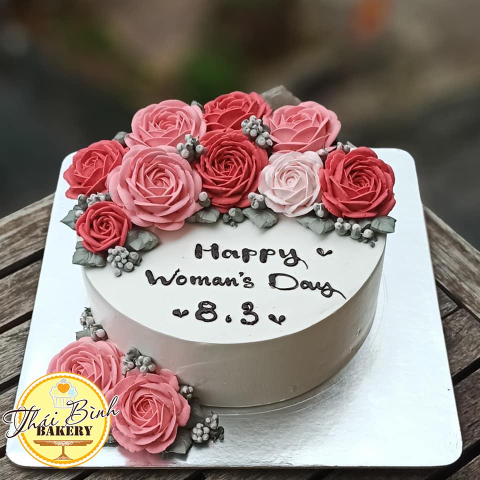 Bánh kem "bánh hoa tông đỏ hồng tặng mẹ ngày 8/3 Handmade của thái bình bakery quà tặng có giá trị độc đáo, gây ấn tượng cho ngày Sinh Nhật, Làm cho Bữa tiệc của Bạn thêm vui vẻ và ấm áp
