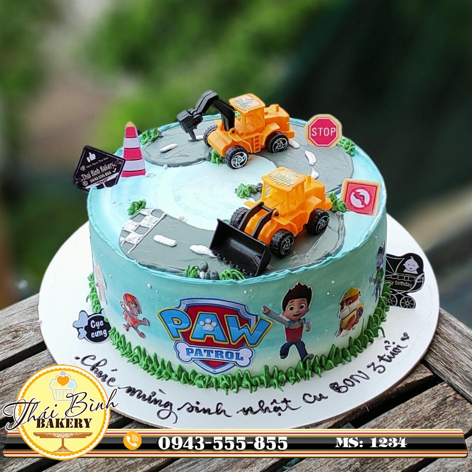 Đánh Giá: Bánh kem đường đua máy xúc số 3 & chú chó cứu hộ tặng cu Bon 3 tuổi