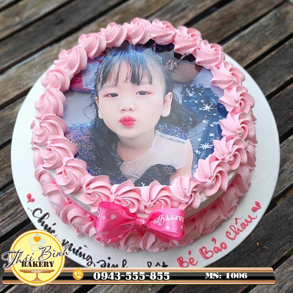 Bánh kem "Bánh kem in ảnh con yêu xoáy hoa kem đơn giản, ý nghĩa tặng con yêu Trâm Anh Handmade của thái bình bakery quà tặng có giá trị độc đáo, gây ấn tượng cho ngày Sinh Nhật, Làm cho Bữa tiệc của Bạn thêm vui vẻ và ấm áp
