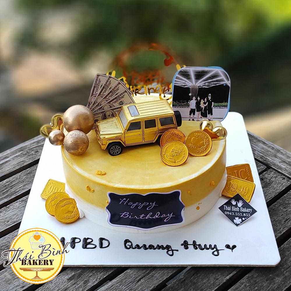 Đánh Giá: Bánh kem ô tô vàng cắm bóng in ảnh sang trọng tặng gia đình