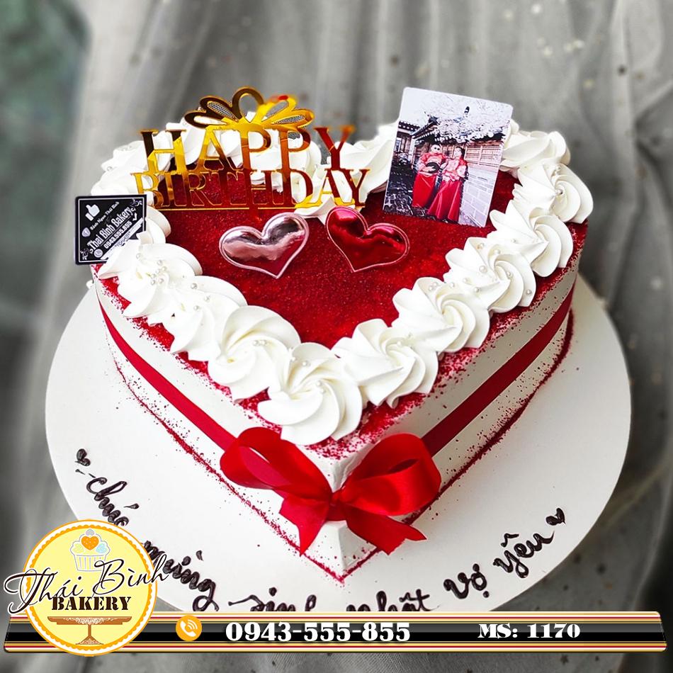 Đánh Giá: Bánh tim xoáy hoa đơn giản in ảnh cưới tặng sinh nhật Vợ