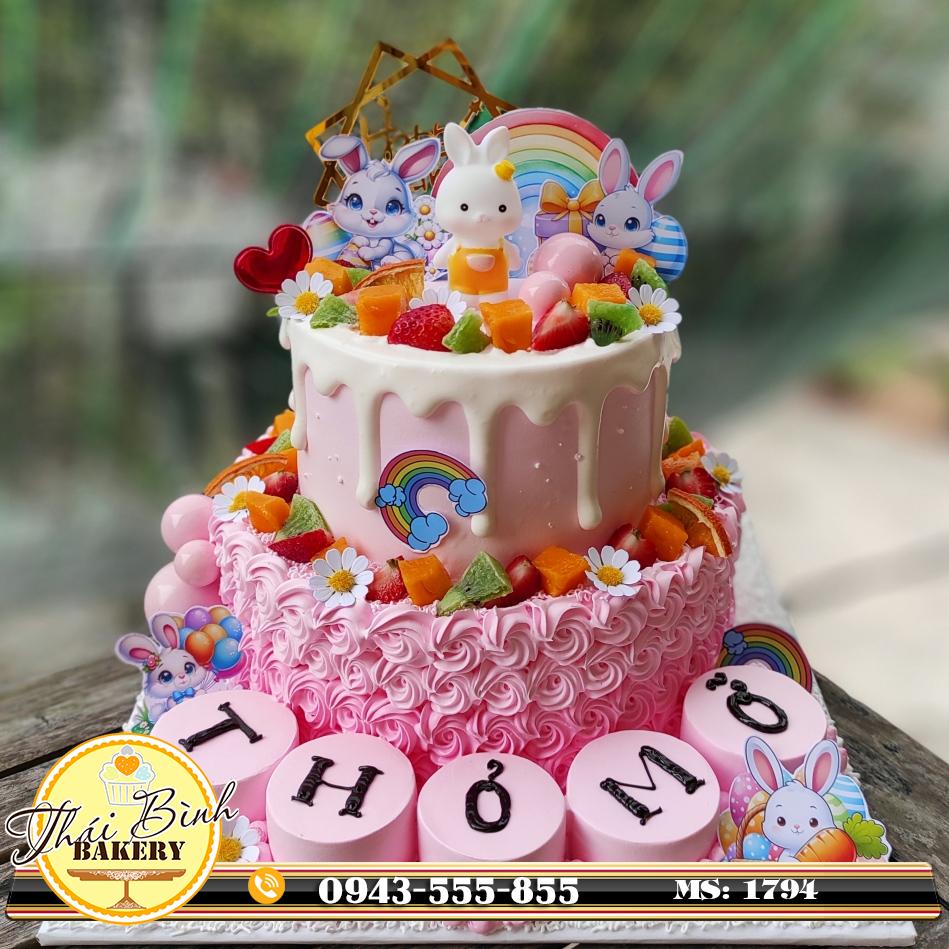 Đánh Giá: Bánh kem 2 tầng thỏ hoa quả tươi hồng dễ thương