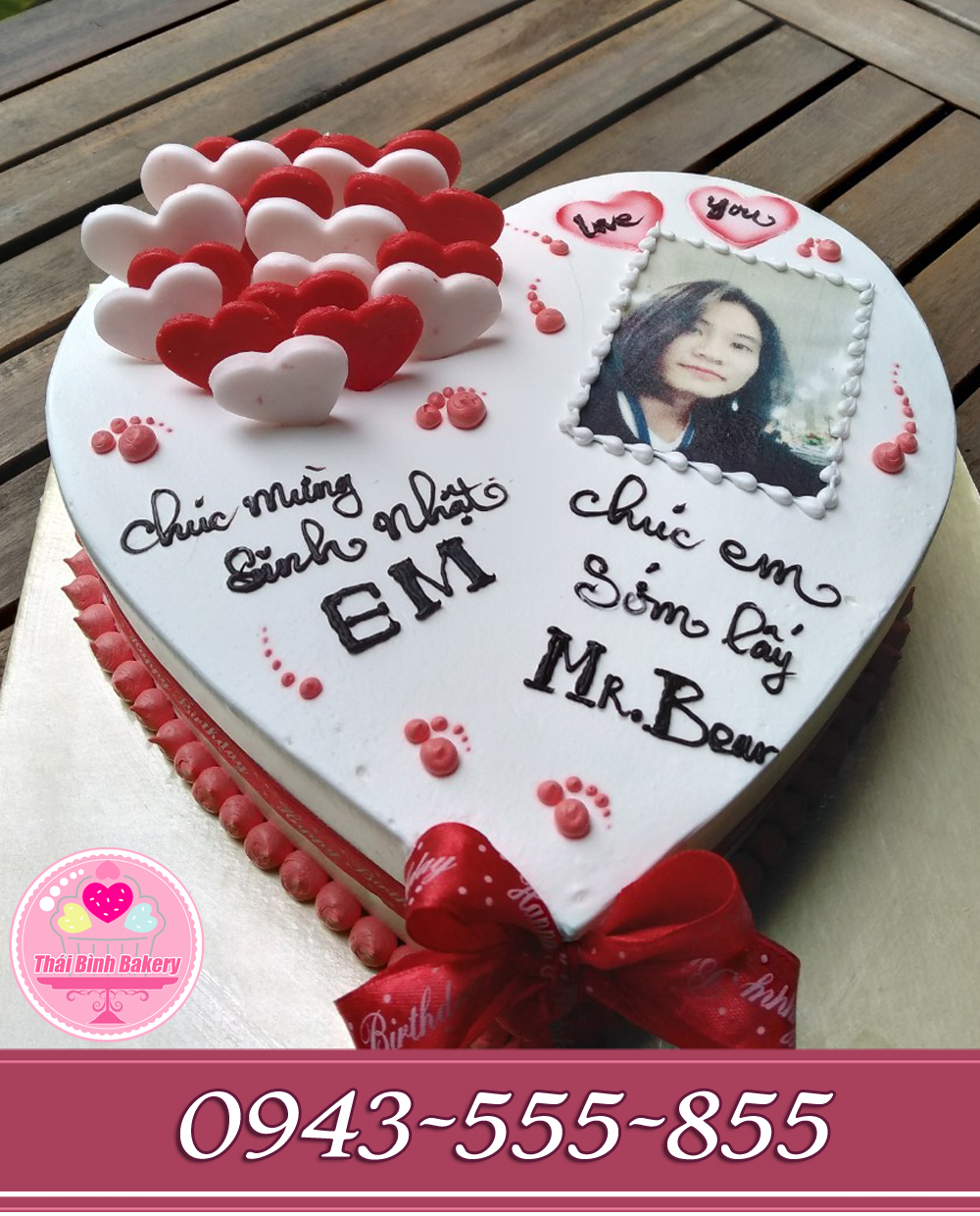 Đánh Giá: Bánh in ảnh cắm tim đỏ trắng tặng sinh nhật bạn gái