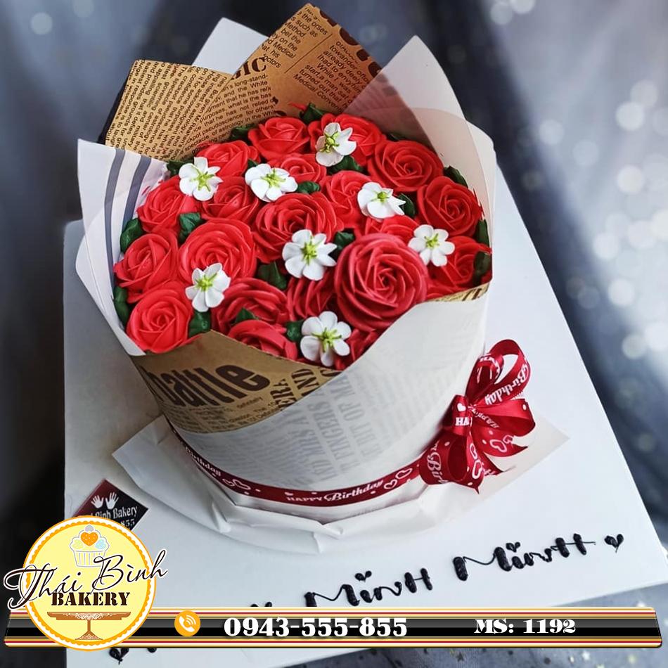 Đánh Giá: Bánh kem tạo hình bó hoa hồng đỏ $ hoa mai mừng sinh nhật con yêu Minh Minh