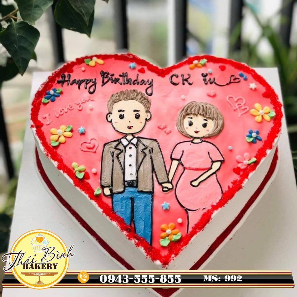 Đánh Giá: Bánh tim vẽ mẹ bầu xinh chúc mừng sinh nhật chồng