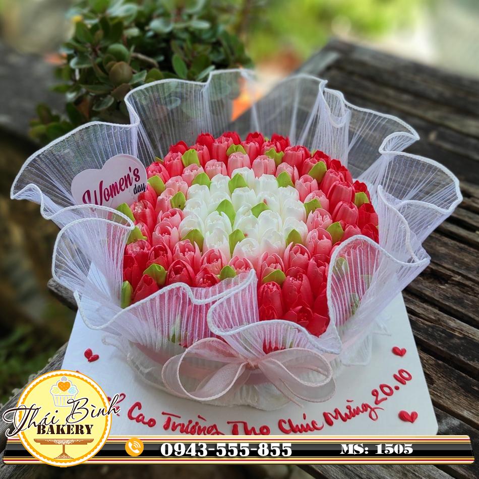 Bánh kem bó hoa tuylip đỏ_trắng women's day