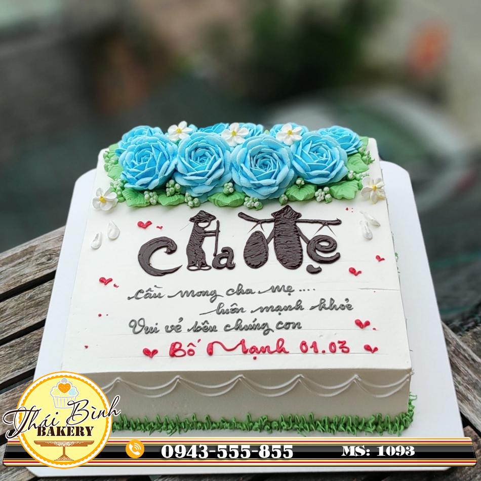 Đánh Giá: Bánh chữ cha-mẹ nghệ thuật bắt hoa hồng xanh mừng sinh nhật cha-mẹ
